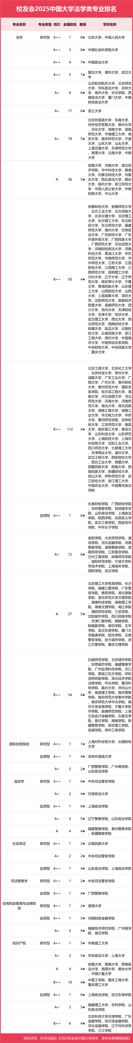 校友會2025中國大學法學類專業(yè)排名(應(yīng)用型)