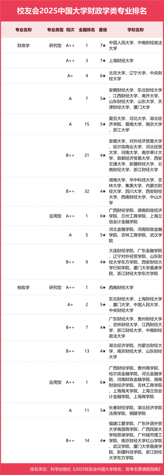 校友會(huì)2025中國(guó)大學(xué)財(cái)政學(xué)類專業(yè)排名(研究型)