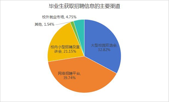 在招聘信息獲取的渠道方面,高質(zhì)量的大型校園雙選會(huì)及專業(yè)性突出的小型招聘、宣講會(huì)在為畢業(yè)生提供就業(yè)信息方面仍然發(fā)揮著主導(dǎo)作用,同時(shí),各種第三方網(wǎng)上招聘平臺(tái)也因其方便快捷、不受時(shí)間地域限制而越來越受到畢業(yè)生的青睞,只是在甄別求職信息的真實(shí)性方面仍須加強(qiáng)指導(dǎo)。