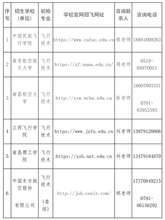 為做好中國民用航空飛行學(xué)院、南京航空航天大學(xué)、南昌航空大學(xué)、江西飛行學(xué)院、南昌理工學(xué)院、東航江西分公司等單位招收民航飛行技術(shù)專業(yè)考生初檢選拔工作,現(xiàn)將有關(guān)事項通知如下。