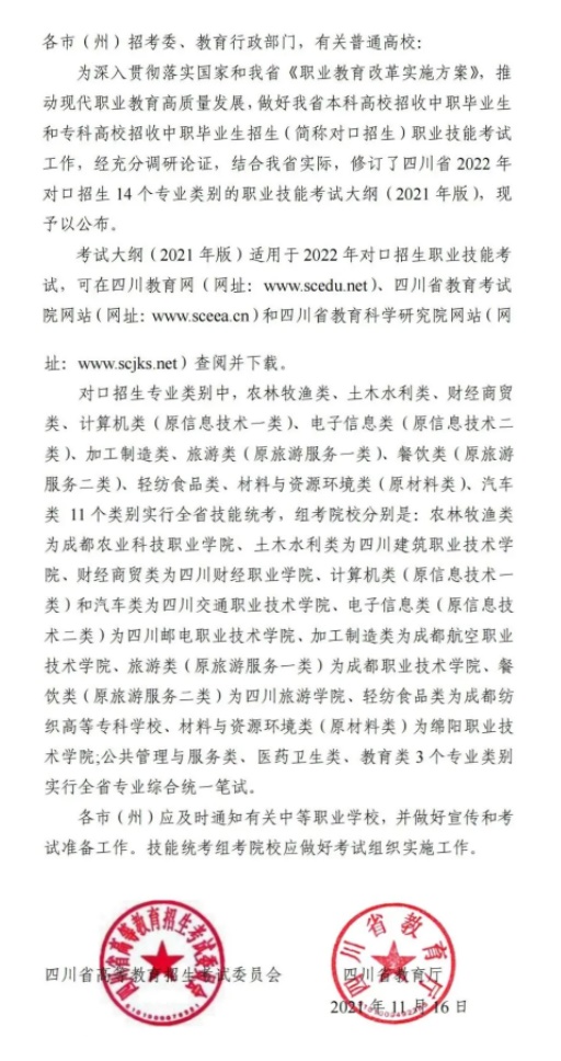關于公布四川省2022年普通高校對口招生職業(yè)技能考試大綱的通知