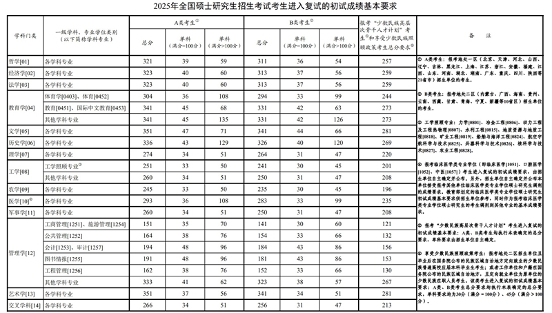 | 《2025年全國(guó)碩士研究生招生考試考生進(jìn)入復(fù)試的初試成績(jī)基本要求》(國(guó)家分?jǐn)?shù)線) |
