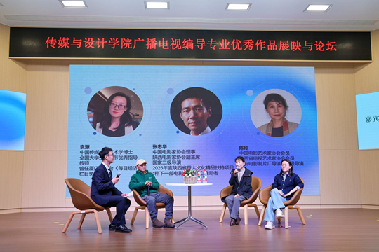 論壇環(huán)節(jié),行業(yè)專(zhuān)家與教育學(xué)者圍繞 “故事表達(dá)與畫(huà)面語(yǔ)言”“演員引導(dǎo)與場(chǎng)景調(diào)度”“人才培養(yǎng)與行業(yè)需求” 等議題展開(kāi)深度探討。張忠華導(dǎo)演與陳玲導(dǎo)演分別對(duì)學(xué)生作品進(jìn)行專(zhuān)業(yè)點(diǎn)評(píng),袁媛博士分析了當(dāng)下廣編學(xué)子的創(chuàng)作新特點(diǎn)。針對(duì) “人機(jī)協(xié)同” 創(chuàng)作思維培養(yǎng),嘉賓們一致認(rèn)為,AI 是賦能工具而非替代者,創(chuàng)作者需堅(jiān)守情感洞察力與個(gè)人表達(dá)核心。