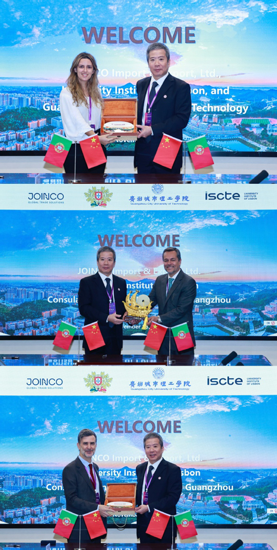 | 廣州城市理工學(xué)院蘇成校長與葡萄牙JOINCO公司、里斯本大學(xué)學(xué)院簽署三方協(xié)議 |