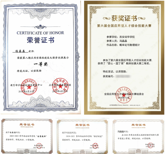 這些創(chuàng)新實踐為她贏得諸多榮譽:教育部學校規(guī)劃建設發(fā)展中心應用型課程建設大課堂說課大賽國家一等獎、陜西省大學數(shù)學教學創(chuàng)新大賽一等獎、全國應用型人才技能教師創(chuàng)課大賽二等獎、校級應用型多媒體課件一等獎、教案一等獎,第五屆課堂創(chuàng)新大賽校級二等獎等多項榮譽,同時榮獲校級“教學新星”稱號以及“優(yōu)秀教師”稱號。