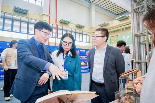 “2025泰山·大學(xué)生文旅與非遺文化展”成為互動熱點。嘉賓們體驗泰山煎餅制作、組裝榫卯模型,與非遺傳承人零距離交流,親身感受泰山文化的魅力。信韓大學(xué)國際學(xué)院護(hù)理保健學(xué)主任教授崔明植表示:“今天能來到中國,參與這場意義深遠(yuǎn)的交流活動,我特別有感觸,感覺中韓緊密相連宛如一體!