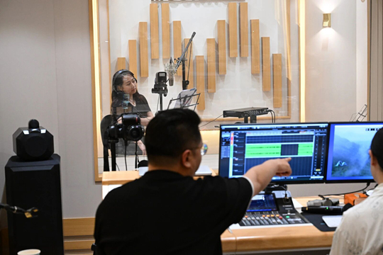 在錄音棚里,她讓聲音節(jié)奏與畫(huà)面同步,語(yǔ)氣隨音樂(lè)起伏,最終將文字轉(zhuǎn)化為有溫度的聲景。這也印證了她所秉持的理念——好的配音,是用聲音陪伴畫(huà)面完成一場(chǎng)真誠(chéng)的講述。正是這份專業(yè)的掌控力與背后的反復(fù)打磨,讓她成功塑造了打動(dòng)人心的“極境之聲”。