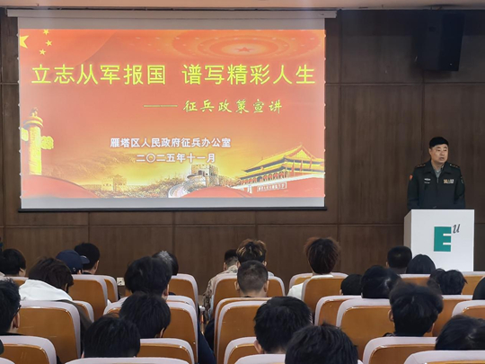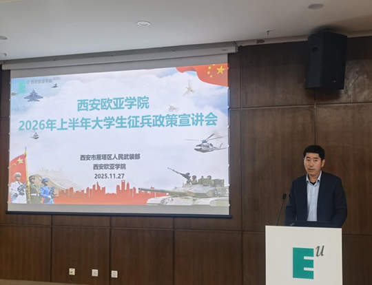國無防不立,民無兵不安。為深入貫徹落實習近平總書記強軍思想,積極響應黨中央、中央軍委關于征集高素質青年入伍的戰(zhàn)略部署,引導廣大青年學子將愛國之心化為報國之行,11月27日,以“志存高遠礪青春,建功立業(yè)赴軍營”為主題的西安歐亞學院2026年上半年大學生征兵政策宣講會在學校圖書館學術報告廳隆重舉行。此次活動不僅是一場精準的政策解讀會,更是一堂深刻的思想動員課和國防教育課,正式掀開了西安歐亞學院新一年度征兵工作的序幕。