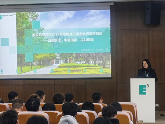 精準的保障是消除后顧之憂的關鍵。西安歐亞學院學生資助管理中心專員郭曉慧老師隨后登臺,聚焦同學們最為關切的學業(yè)與經(jīng)濟支持問題,對“服兵役國家教育資助政策”進行了專業(yè)細致的解讀。她從資助政策的具體內容、申請流程指南到學校的對接部門與資源平臺,都做了清晰的說明,學校也將為入伍學生提供“一站式”全流程服務,確保每位有志學子都能“輕裝上陣”,安心報國。