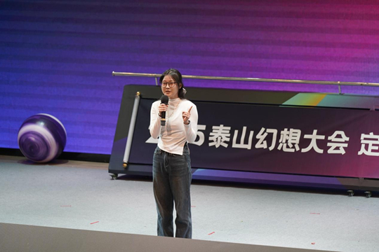 學(xué)生科幻聯(lián)合會代表劉夏冰同學(xué)(五汶書院/藝術(shù)傳媒學(xué)院)以“泰山腳下,星空之上”為題登上講臺,分享了自己的成長感悟。她表示,科幻是認(rèn)知世界的獨(dú)特透鏡。蓬萊科幻學(xué)院(云端劇本殺學(xué)院)以“東方幻想王國”為定位,搭建跨界實(shí)踐平臺,使她收獲了想象力與勇氣、跨界智慧與文化自信,還深刻體會到科幻創(chuàng)作需兼具科技硬核與人文溫度,更加堅(jiān)定了以東方智慧講述未來中國故事的信念。