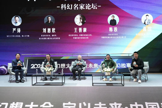 在復(fù)旦大學(xué)教授嚴(yán)鋒的主持下,劉慈欣、王晉康、韓松、海漄四位中國科幻標(biāo)志性人物齊聚一堂,圍繞“科幻與中國故事”展開了討論。他們從不同角度圍繞中國科幻創(chuàng)作密碼、科幻與現(xiàn)實(shí)的關(guān)聯(lián)、科幻與技術(shù)的邊界三大核心問題展開深入探討,分享專業(yè)觀點(diǎn)與深度思考。