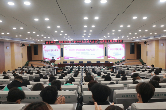 為引導(dǎo)廣大青年學(xué)生形成積極健康的婚戀觀與家庭觀,12月4日下午,由陜西省婦女聯(lián)合會指導(dǎo),陜西省婚姻家庭服務(wù)與研究基地、商洛市婦女聯(lián)合會聯(lián)合主辦,商洛職業(yè)技術(shù)學(xué)院承辦的“新時代家庭觀大宣講”進(jìn)高校主題實(shí)踐活動在商洛職業(yè)技術(shù)學(xué)院圖書館報告廳舉行;顒右浴皹淞⒄_婚戀觀,走好幸福人生路”為主題。商洛市婦聯(lián)主席胡燕梅,商洛職業(yè)技術(shù)學(xué)院黨委副書記、工會主席吳雪,副院長李承濤,陜西省婚姻家庭服務(wù)與研究基地負(fù)責(zé)人,西安培華學(xué)院女子學(xué)院副院長李蒙,骨干教師秦園,基地專家團(tuán)成員及師生代表共200余人參加了活動。