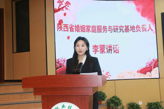 西安培華學(xué)院女子學(xué)院副院長李蒙代表陜西省婚姻家庭服務(wù)與研究基地講話。她深刻闡述了新時代背景下樹立正確婚戀觀、加強(qiáng)家庭建設(shè)的重大意義,表示這是響應(yīng)黨的二十大號召、筑牢社會和諧基石的關(guān)鍵舉措。她詳細(xì)介紹了基地在構(gòu)建“四位一體”發(fā)展格局、打造系統(tǒng)化工作體系方面取得的成效,特別是通過“新時代家庭觀進(jìn)高校示范院校聯(lián)盟”將理論研究成果轉(zhuǎn)化為服務(wù)青年、服務(wù)社會的生動實(shí)踐。