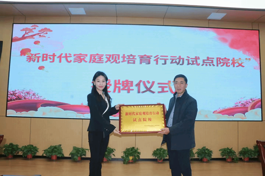 現(xiàn)場舉行了“新時代家庭觀培育行動試點(diǎn)院校”授牌儀式,省基地負(fù)責(zé)人李蒙為商洛職業(yè)技術(shù)學(xué)院授牌。