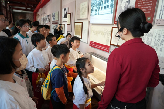 青少年在講解員的帶領(lǐng)下參觀農(nóng)講所(廣州日?qǐng)?bào) 提供)