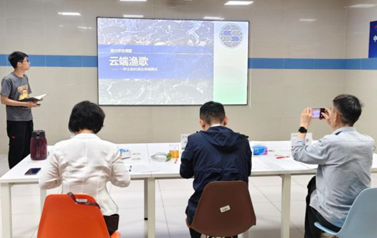 劉芳丞介紹“高密度養(yǎng)殖設(shè)備及監(jiān)控系統(tǒng)”項目基本簡介(陳夢迪 攝)