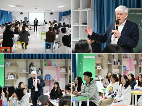 Colin Dodds首先在A8-109課室為學生開展主題為《演化還是變革?銀行業(yè)在全球變化莫測、競爭威脅不斷的環(huán)境中的未來生存之論》的國際學術講座。他深刻分析全球金融格局深刻重構的背景,指出傳統(tǒng)銀行業(yè)正面臨技術革命與商業(yè)模式顛覆的雙重挑戰(zhàn)。他強調,未來銀行業(yè)將呈現(xiàn)“平臺化服務+生態(tài)化競爭”的新格局,這場變革不僅關乎商業(yè)模式迭代,更涉及全球金融治理體系的深層調整。面對無國界金融生態(tài)的崛起,他呼吁青年學子以破界思維投身金融創(chuàng)新。