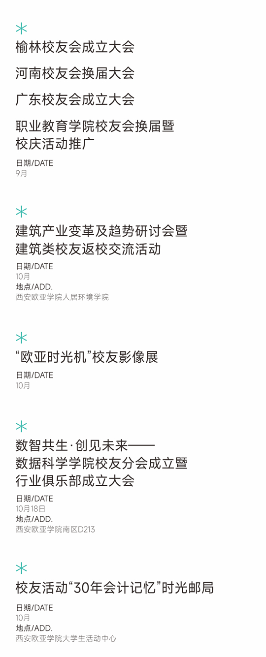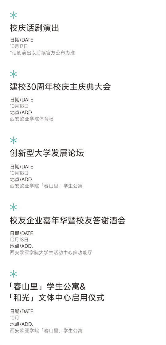 以下為西安歐亞學(xué)院建校30周年系列校慶活動總覽——