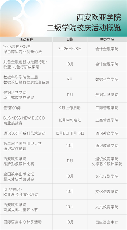 | 倒計時3個月!西安歐亞學(xué)院建校30周年系列活動,期待與你共同抵達 |