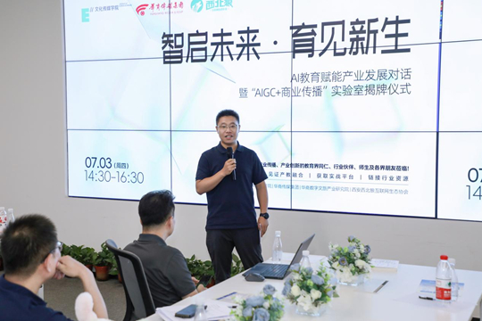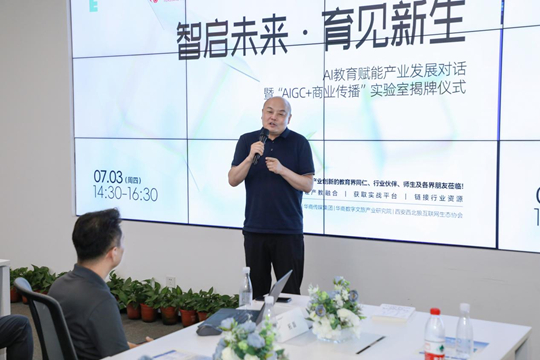 當(dāng)下,生成式AI正以前所未有的速度重塑教育生態(tài),帶來全方位變革。西安歐亞學(xué)院文化傳媒學(xué)院緊跟時代步伐,不斷優(yōu)化課程體系改革,讓AI賦能“教”與“學(xué)”。2025年7月3日下午,“智啟未來·育見新生”AI教育賦能產(chǎn)業(yè)發(fā)展對話暨“AIGC+商業(yè)傳播”實驗室授牌儀式在設(shè)計與媒體實驗中心203網(wǎng)絡(luò)新媒體中心舉行。華商傳媒集團(tuán)總裁助理劉曉斌主持活動,西安歐亞學(xué)院副校長李正、文化傳媒學(xué)院副院長曹小娟與50余位行業(yè)嘉賓一同來到現(xiàn)場,共同探索“AI賦能教育”的實踐路徑與人才培養(yǎng)新模式。