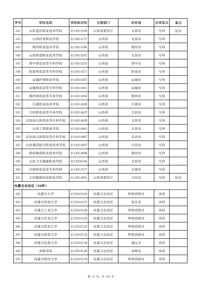 附件:1.全國普通高等學(xué)校名單(點擊查看)