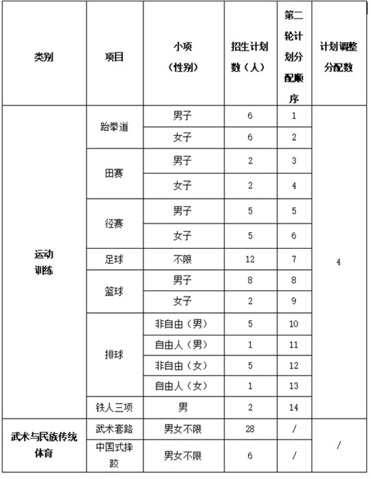 3.運(yùn)動訓(xùn)練專業(yè)和武術(shù)與民族傳統(tǒng)體育專業(yè)之間不進(jìn)行計(jì)劃調(diào)整。