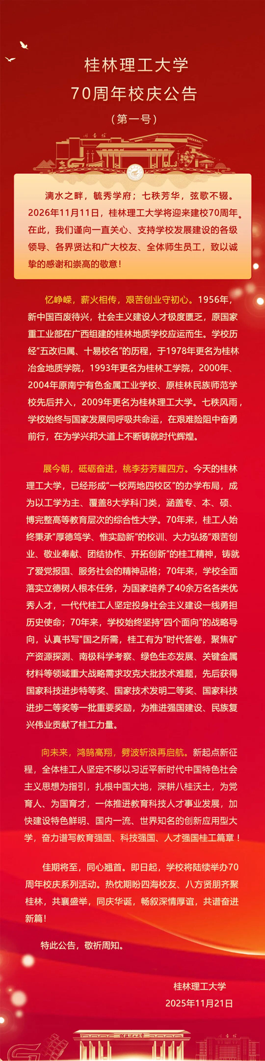 桂林理工大學(xué)70周年校慶公告(第一號)