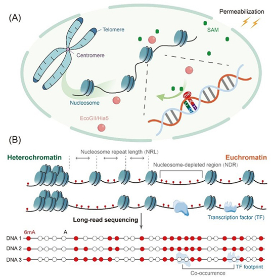 圖2 利用6mA甲基化酶和三代測序繪制染色質(zhì)環(huán)境圖譜