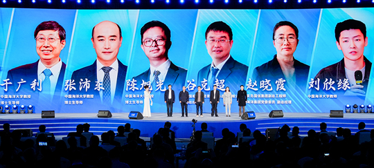 中國海洋大學(xué)教授于廣利、張沛東、陳旭光,青年教師劉欣緣與中國船舶集團(tuán)青島北海造船有限公司副總經(jīng)理谷克超,青島國信集團(tuán)副總工程師、海洋集團(tuán)副總經(jīng)理趙曉霞共同演繹“海洋超能力”。