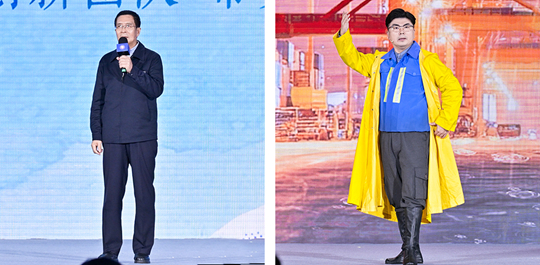 山東省港口集團(tuán)高級別專家、首席科學(xué)家,青島港“連鋼創(chuàng)新團(tuán)隊(duì)”帶頭人張連鋼與青島市京劇院一級演員蘇旭以情景講述與現(xiàn)代京劇融合方式展現(xiàn)“東方大港”魅力。