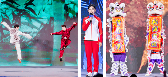 第十五屆全運(yùn)會(huì)武術(shù)套路男子太極拳太極劍全能項(xiàng)目冠軍劉德文,季軍紀(jì)豪,新、老現(xiàn)代五項(xiàng)女子個(gè)人賽雙冠軍張明煜,南獅傳統(tǒng)項(xiàng)目銅牌臨沂大學(xué)龍獅隊(duì)帶來“青春有我”的澎湃活力。