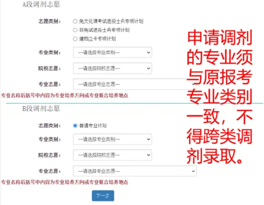4. 填報(bào)調(diào)劑志愿時(shí),填報(bào)的專業(yè)類別要與自己一志愿報(bào)考的專業(yè)類別一致,不能跨專業(yè)類別填報(bào)調(diào)劑志愿。例如:普通文科不能填報(bào)藝術(shù)類專業(yè),藝術(shù)類也不能填報(bào)普通文科專業(yè)。