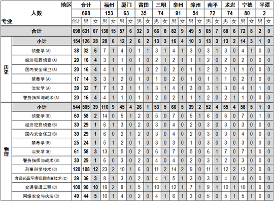 (2)報考司法警察類專業(yè)考生必須在福建報名并參加高考,戶籍不限,為高級中等教育學校畢業(yè)。