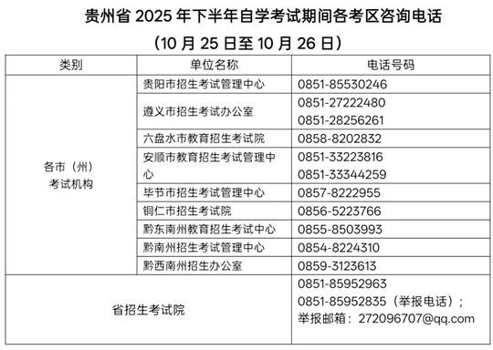 | 貴州省2025年下半年高等教育自學(xué)考試考前提示 |