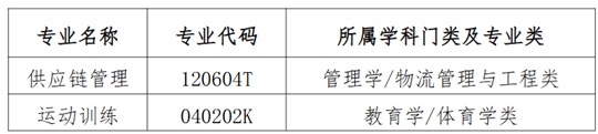 根據(jù)《教育部高等教育司關(guān)于開展2025年度普通高等學(xué)校本科專業(yè)設(shè)置工作的通知》(教高司函〔2025〕3號)《關(guān)于開展2025年度普通高等學(xué)校本科專業(yè)設(shè)置工作的通知》(津教高函〔2025〕20號)等文件要求,我校開展了2025年度擬增設(shè)專業(yè)申報(bào)工作。經(jīng)學(xué)院申請、校內(nèi)外專家評議、校長辦公會(huì)審議通過,擬增設(shè)供應(yīng)鏈管理專業(yè)、運(yùn)動(dòng)訓(xùn)練專業(yè)。