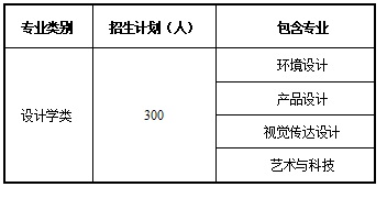 為給予學(xué)生更多的專業(yè)選擇機(jī)會,我校藝術(shù)類專業(yè)實行大類(設(shè)計學(xué)類)招生。入學(xué)一年后按照學(xué)習(xí)成績和學(xué)生志愿進(jìn)行專業(yè)分流。整體招生計劃如下: