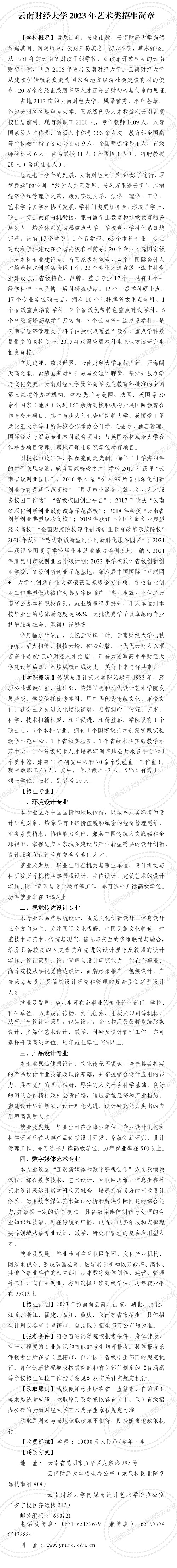 云南財(cái)經(jīng)大學(xué)2023年藝術(shù)類招生簡章