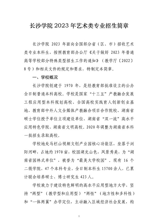 長(zhǎng)沙學(xué)院2023年藝術(shù)類專業(yè)招生簡(jiǎn)章
