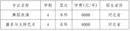 河北體育學(xué)院2023年招收藝術(shù)類專業(yè)有播音與主持藝術(shù)專業(yè)、舞蹈表演專業(yè)[面向民族民間舞、健美操、體育舞蹈培養(yǎng)]。