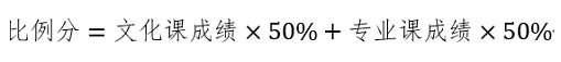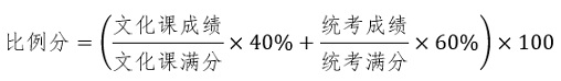 在實行平行志愿的省份,按照投檔成績從高到低的順序擇優(yōu)錄取。在實行順序志愿的省份,按照比例分(四舍五入、保留小數(shù)點后兩位)從高到低的順序擇優(yōu)錄取。比例分滿分為100分,計算公式為: