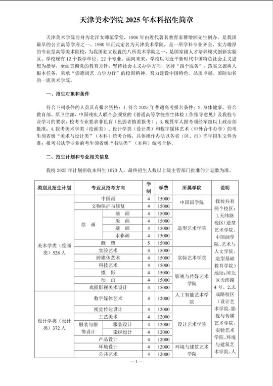 天津美術(shù)學(xué)院2025年本科招生簡(jiǎn)章