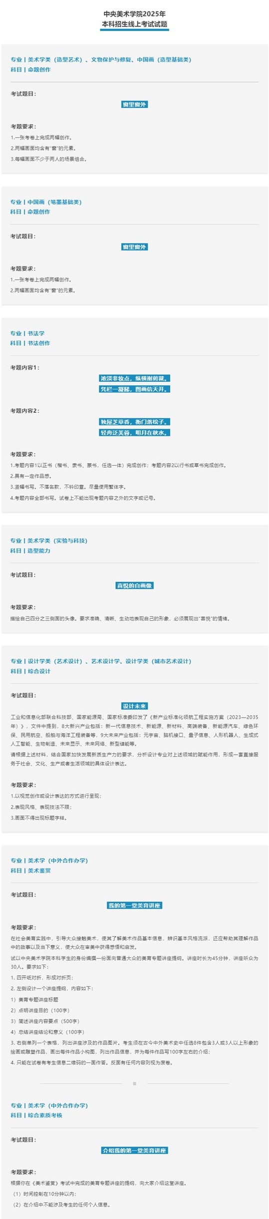 | 考題發(fā)布丨中央美術(shù)學(xué)院2025年本科招生線上考試試題 |