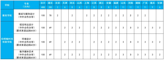 2025年我校計劃招收中外合作辦學設計學類本科生400人,文、理兼收。各招生省份分省計劃詳見下表: