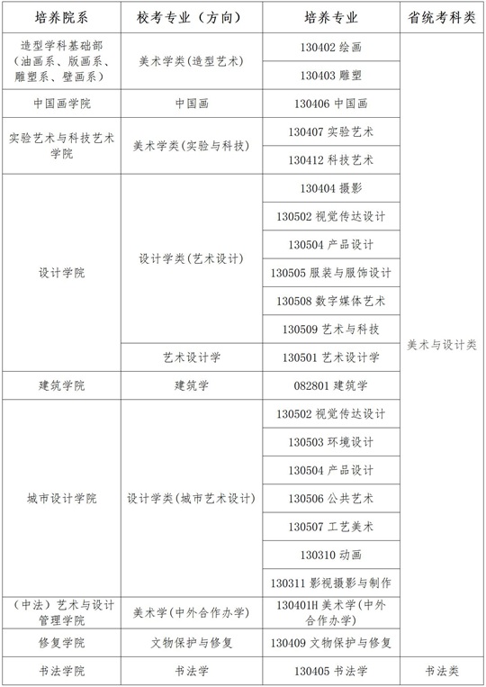 中央美術(shù)學(xué)院2026年本科招生?紝I(yè)(方向)省統(tǒng)考科類對(duì)應(yīng)要求