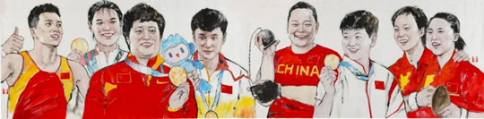體育承載著國(guó)家強(qiáng)盛民族振興的夢(mèng)想,大型的體育盛會(huì)也是文化交流的平臺(tái)。彭華競(jìng)院長(zhǎng)為亞運(yùn)會(huì)創(chuàng)作的《奪金時(shí)刻》畫作在開幕式上進(jìn)行循環(huán)展出,驚艷亮相。同時(shí),畫作也在全國(guó)多個(gè)平臺(tái)進(jìn)行展播,獲得了社會(huì)各界的廣泛贊譽(yù)。