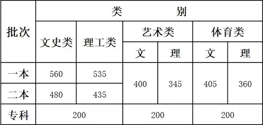 云南省2019年普通高校招生錄取最低控制分?jǐn)?shù)線
