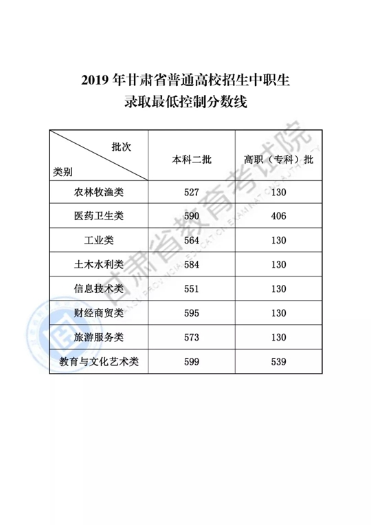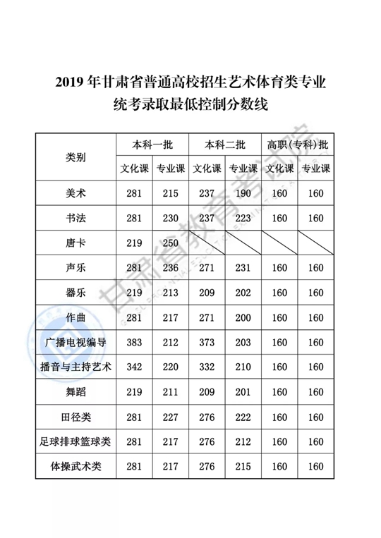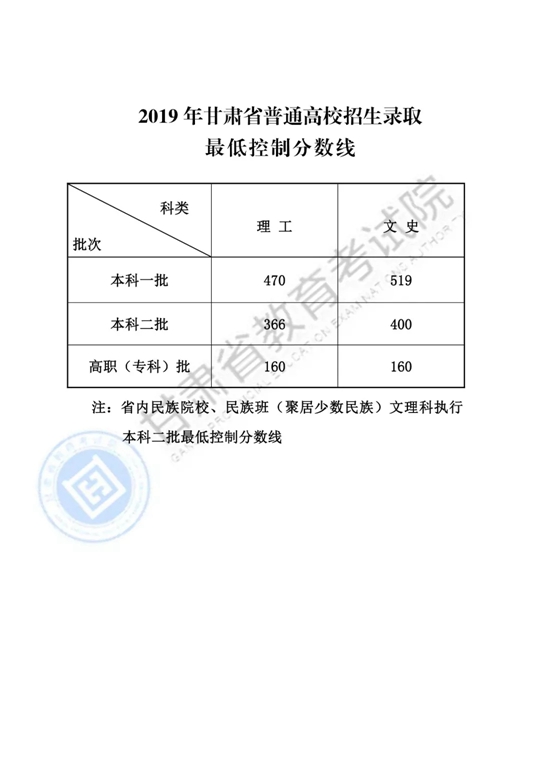 | 甘肅省2019年普通高校招生錄取最低控制分?jǐn)?shù)線 |