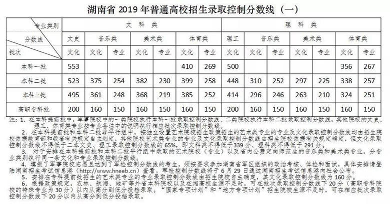 | 湖南公布2019年普通高校招生錄取控制分?jǐn)?shù)線 |