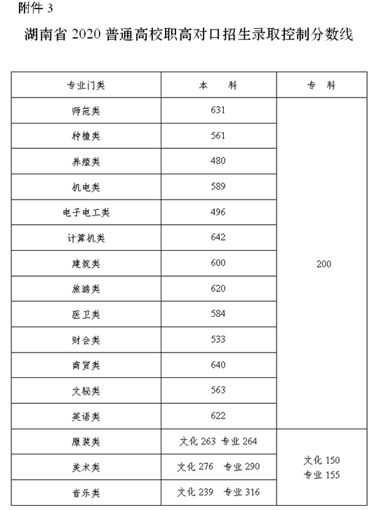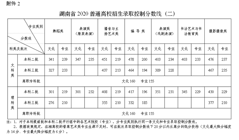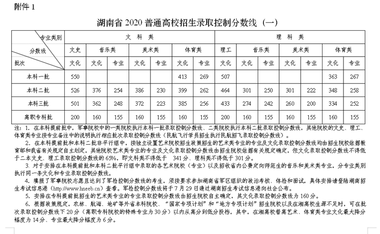 | 湖南公布2020年普通高校招生錄取控制分數(shù)線 |