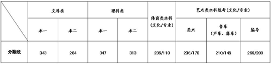 注:一、藝術(shù)類校考本科專業(yè)錄取最低控制分?jǐn)?shù)線: